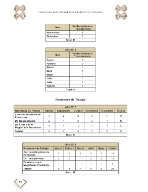 Reuniones de Trabajo Enero Febrero Marzo Abril Mayo Totales